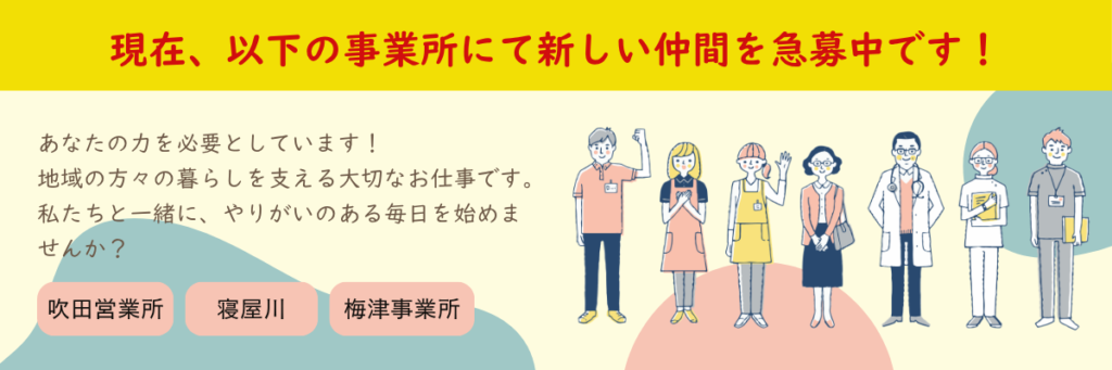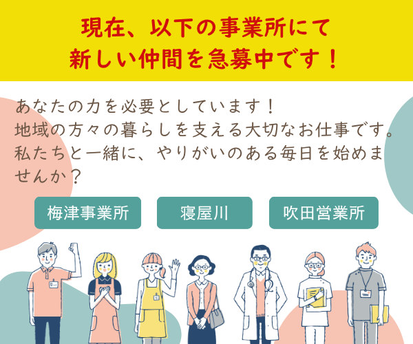 お問い合せ HOME 新着情報 サービス案内 メンタル 産前産後ケア ベビーシッター 精神保健福祉士 採用情報 Q&A 事業所案内 会社概要 ブログ HOME 新着情報 サービス案内 メンタル 産前産後ケア ベビーシッター 精神保健福祉士 採用情報 Q&A 事業所案内 会社概要 ブログ お問い合せ Scroll しなやかな人生を、 新着情報 News 保育安全計画について 2025年9月30日 枚方サテライトオープンのお知らせ 2025年8月19日 次世代育成支援対策推進法に関する一般事業主行動計画を策定しました。 2025年2月18日 ごあいさつ Greetings 訪問メンタルケア・訪問看護ステーション「こころみ」です。私たちは北摂を中心に精神科に特化した訪問看護を行なっています。うつ病・統合失調症・発達障害・不安症・パニック障害・産前産後うつ・社交不安・双極性障害・認知症など幅広く支援していきます。また、mammy care(マミーケア)として、子育て世代のトータルサポートも行っております。 事業内容 Our Services メンタルケア私たちは精神科に特化した訪問看護を行っています。「対話」を大事に、利用者様に寄り添ったケアをモットーにしております。また利用者様だけではなく、ご家族にとっても良き相談相手となれるような地域支援者をめざしています。 READ MORE 産前産後ケア産前産後は、思ってなかったことが次々と・・・。妊娠中のマイナートラブル不安感や気持ちの落ち込み。産後は赤ちゃんのお世話で自分のことは置いてきぼり・・・赤ちゃんの成長も気になるし、自分の身体の管理、育児と家事のこと・夫婦のことも。まずは、私たちに相談してみてください。どんな些細なことでも構いません! READ MORE 精神保健福祉士計画相談などの受付は現在しておりませんが、年金のこと・生活のこと・支援のこと・就労のことなど精神保健福祉士に相談してみませんか?いろんな社会資源への道筋を一緒に考えましょう。 READ MORE ベビーシッター子育て世帯を対象に、頑張るママたちのメンタルケアだけではなく、パパのサポートや子どもたちのケアなど、子育てのトータルサポートをしています。 「孤育て」を「子育て」へ・・・ みんなで子どもとママ・パパの成長を見守ります。 READ MORE 家族相談私たちは地域社会の皆様が心地よく生活できるよう支援します。一人暮らしの方、家族と一緒の方、パートナーとの生活をされている方など、すべての方の生活がより豊かになるよう寄り添います。ご本人だけでなく、家族やパートナーからの相談にも応じ、必要な支援や情報を提供いたします。 療育相談訪問作業療法でQOL向上をサポートします。発達に遅れが見られるお子様や、育児でのお悩み、外出困難な成人、ADLの向上が必要な高齢者まで、様々なご家庭に月に数回訪問し、適切なアドバイスとサポートを提供いたします。自宅で行える活動やリラクゼーションを通じて、それぞれの生活がより豊かになるお手伝いをいたします。 育児支援私たちは、訪問看護ステーションでは珍しい心強いスタッフたちが! それは保育士さん。子どもの未来を支えるべく、ご家族のお困りごとに寄り添います。子どもの発達の相談・育児の方法・パパママの心配事も、遠慮なくご相談ください。保育のプロたちが元気にお答えします! お問い合せはこちらから よくある質問 こころみのよくある質問です。みなさまから寄せられる質問とその回答をご紹介します。 Q&A 事業所案内 こころみ各事業所の詳細です。 事業所案内ページ 採用情報 Careers こころみの仲間になりませんか?こころみの採用情報です。 詳しくはこちら 拠点アクセス Access 〒562-0028 大阪府箕面市彩都粟生南6-13-19 インスタグラム Instagtram 4月、新学期が始まるこの時期。 「4月から急に学校に行けなくなる子は多い」 実は珍しいことではあり 【大きくなったね🌟】 訪問を始めた5年前は、まだ赤ちゃん。 外遊びも保育士スタッフが慎重に、 「安 【コグトレ初級講座を受講しました✨】 昨年、あべのハルカスで開催された 「コグトレ初級講座」に参加 4月は 「うちの子、ちょっと気になる…」 という発達相談が増える時期です🤔 集団生活が始まったり、 看護師きみさんの「心を整える2つの魔法」✨ こんにちは!「こころみ」の看護師のきみさんです😊 3月 ご利用者様とのお散歩中に、 かわいいたんぽぽを発見🌼✨ 「せっかくだから作ってみよう!」と、 たん さらに読み込む Instagram でフォロー